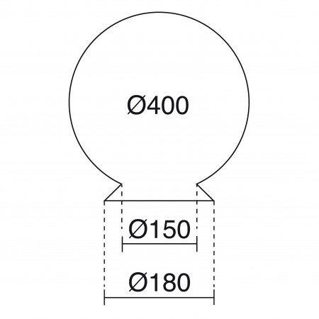 Le globe de Ø 400 mm en résine, résistant aux rayons UV, approprié pour l'usage extérieur.