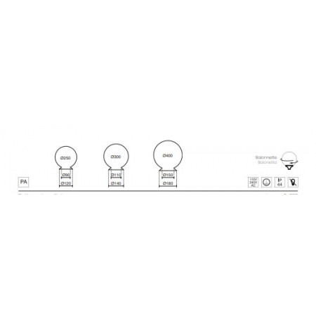 Le globe de Ø 250 mm en résine, résistant aux rayons UV, approprié pour l'usage extérieur.