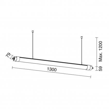 Dimensions Longueur x diamètre (mm): 1300 x 79 - IP66 - IK 10 - Classe de protection Classe II